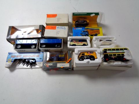A tray of boxed and unboxed die cast vehicles, Corgi, Burago etc