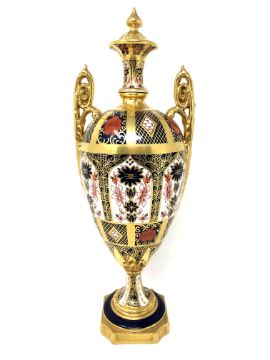 A Royal Crown Derby Imari twin handled lidded vase, height 30cm.