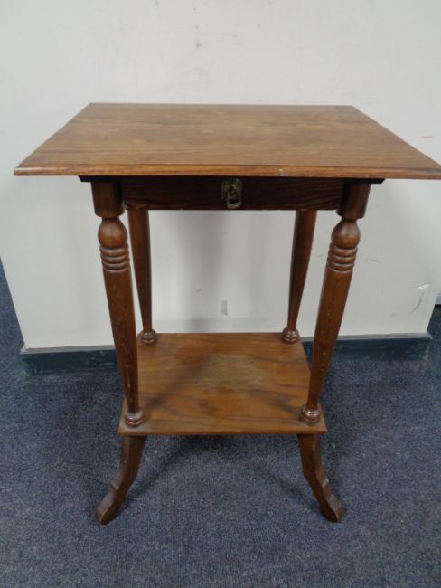 An early 20th century continental oak two tier occasional table fitted a drawer
