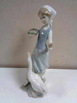 A Lladro figure of a lady with goose.
