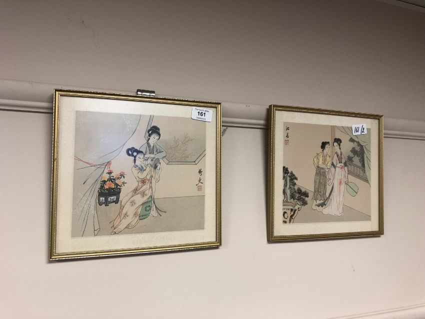 Twentieth Century Japanese School : Geisha Girls, a pair of watercolours, watercolours, signed, each 19 cm x 22 cm, framed as a pair. (2)