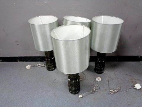 Four contemporary ribbed glass table lamps with shades