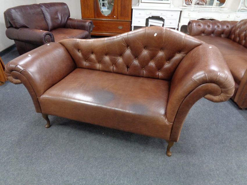 A brown leather Chesterfield style buttoned back chaise longue