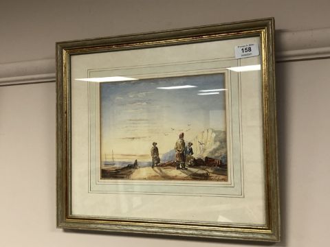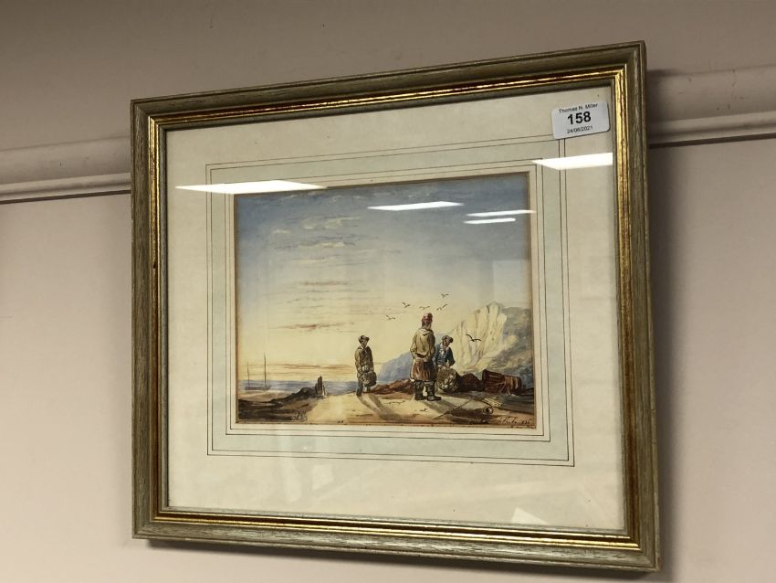 Charlotte Fotherby : Unloading the Day's Catch, watercolour, signed, dated 1836, 18 cm x 24 cm, framed.