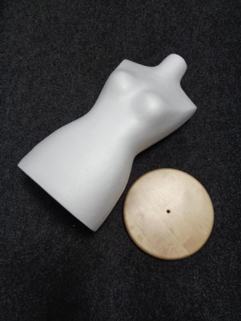 A polystyrene dress mannequin with stand