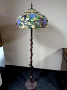 A Tiffany style standard lamp with leaded glass shade