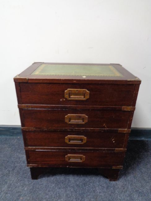 A ship's style four drawer chest with tooled leather inset panel