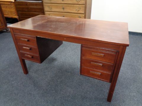 A 20th century continental twin pedestal stained teak writing desk
