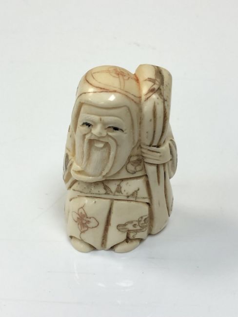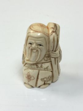 A carved Chinese bone netsuke - village elder with staff