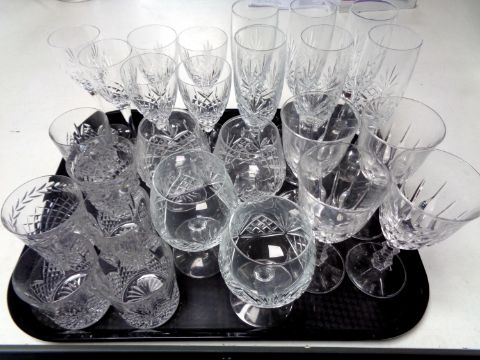 A tray of cut glass and lead crystal drinking glasses