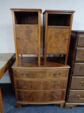 A pair of mahogany bedside cabinets together with a mahogany chest of three drawers