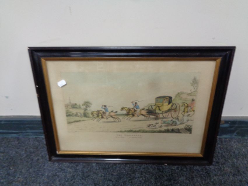 An early 19th century hand coloured engraving, 'The Elopement or a trip to Gretna- Green'