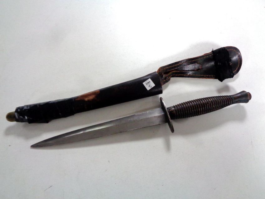 A Fairbairn Sykes third pattern fighting knife in sheath