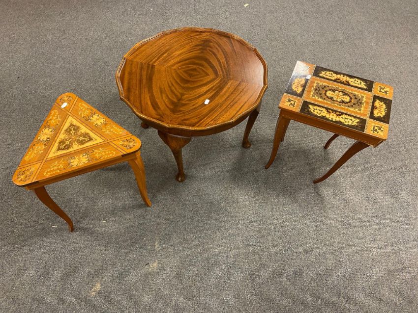Two Italian style occasional tables and a circular coffee table on pad feet