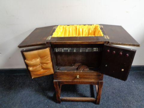 An oak work table fitted a drawer
