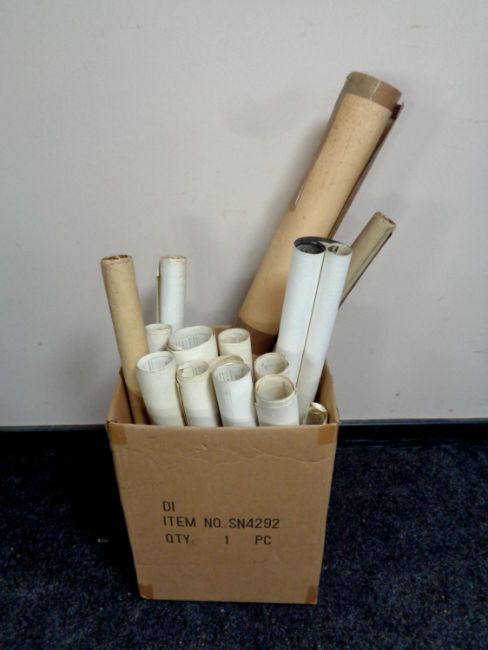 A box containing a quantity of rolled ordinance survey maps