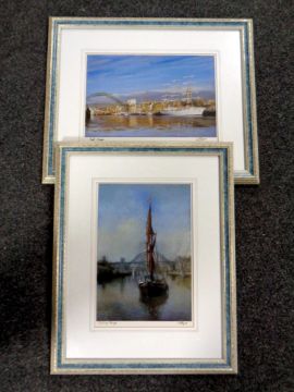 Two signed Walter Holmes prints; sailing barge and tall ships