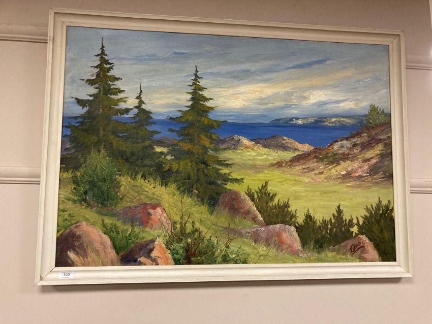 Continental school : The river estuary, oil on canvas, 96 x 66 cm