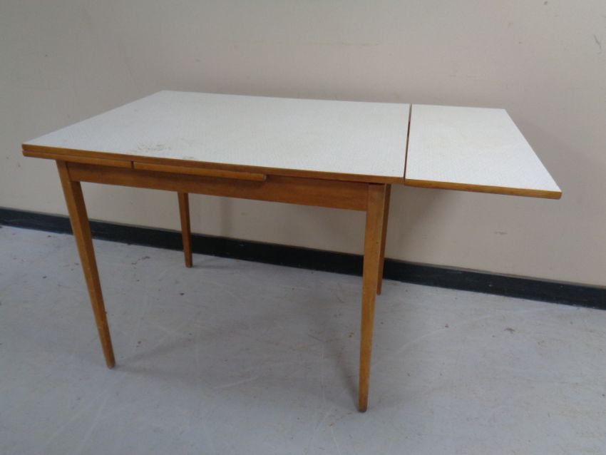 A mid 20th century melamine topped extending kitchen table