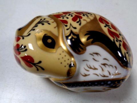 A Royal Crown Derby china paperweight with silver stopper, sleeping mouse