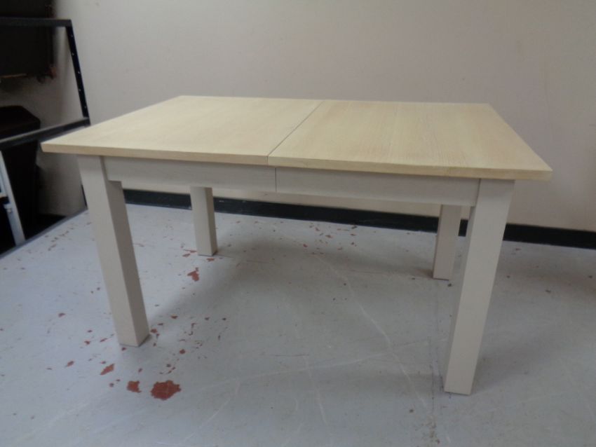 An extending dining table on painted base