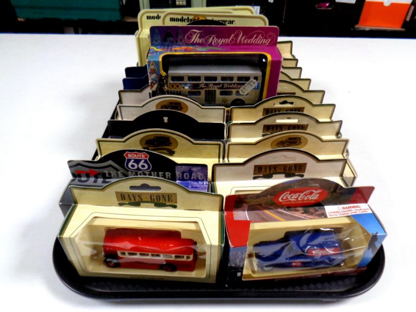 A tray containing 25 die cast vehicles to include Days Gone, Coca-Cola, Matchbox models of yesteryear (boxed)
