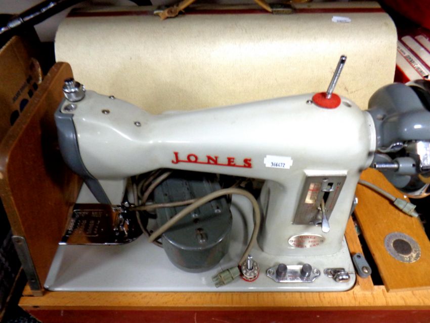 A cased 20th century Jones electric sewing machine