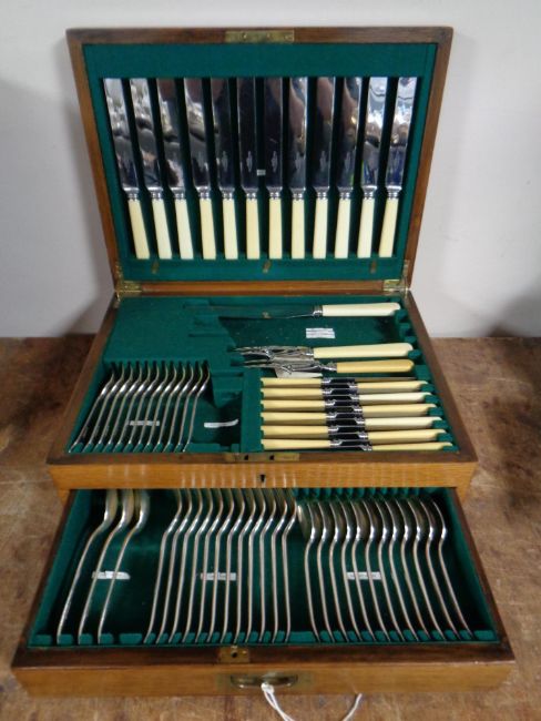 An Edwardian canteen of Robert Mosely Sheffield plated cutlery, double layered, with key