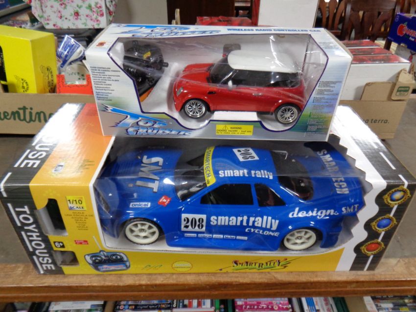 A remote controlled Smart Rally 1/10 vehicle together with a further remote controlled mini