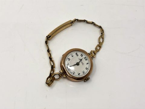 A 9ct gold cased lady's wristwatch signed Reid & Sons, on gilt bracelet