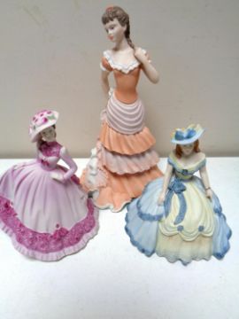 A Coalport The Age of Elegance figure, Operetta, together with two further Coalport Beau Monde figures, Jill and Estelle