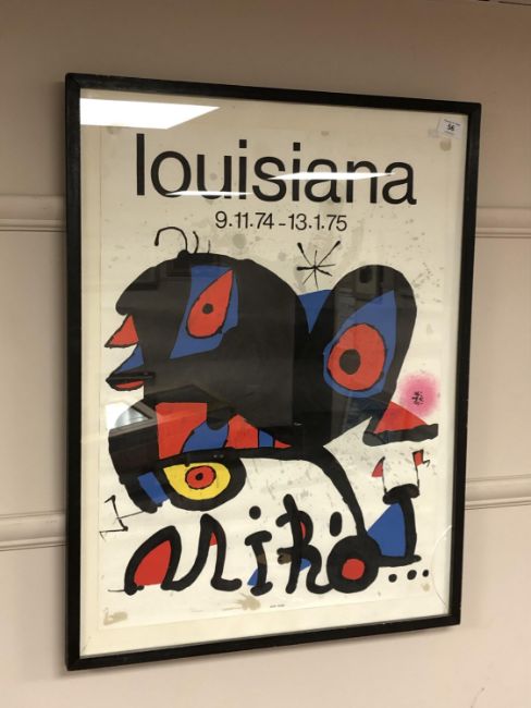 Joan Miro (1893 - 1983) : Louisiana (Museum of Modern Art, Humlebaek, Denmark) 9.11.74 - 13.1.75, an exhibition poster, lithograph in colours, printed by Arte, Paris, 67 cm x 49 cm, framed.