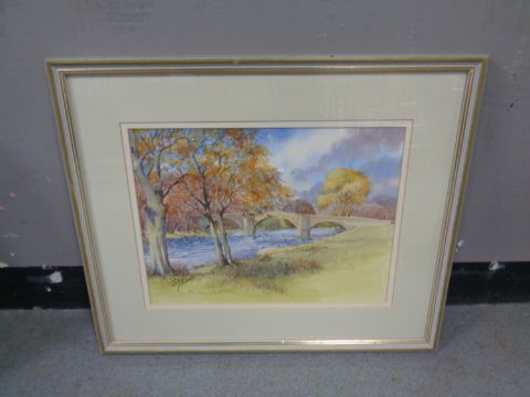 A watercolour, rural bridge scene, signed Williams, 52cm by 44cm