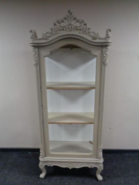 A French style painted display cabinet fitted shelves