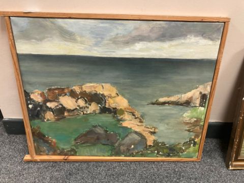 Continental school : Rocks by a coastline, oil on canvas, 61 x 49 cm