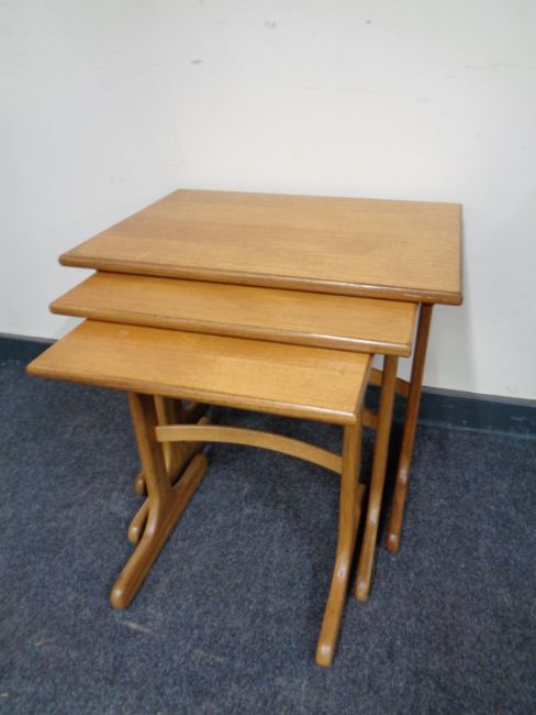 A nest of three teak tables