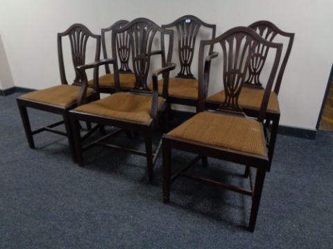 A set of six 19th century shield back dining chairs comprising of two carvers and four singles.