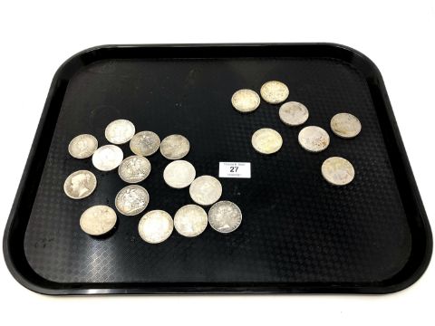 A collection of twenty-one George IV and later crowns (fourteen sterling silver, three 1935 crowns and four others)
