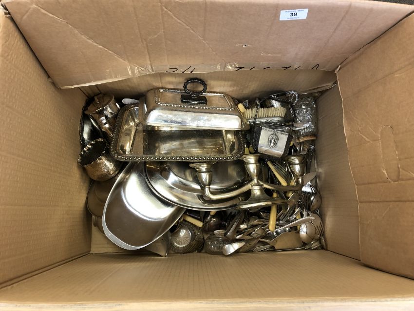 A box of a large quantity of silver and plated items