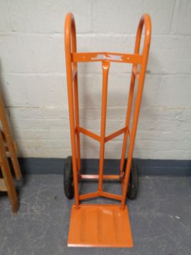 A twin handled sack barrow with spring axle