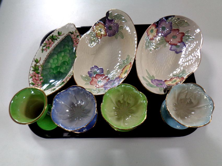 A tray containing seven pieces of Maling lustre china to include grapefruit dishes, Azalea shallow bowl etc