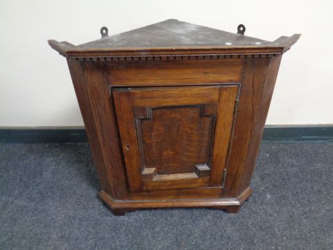 A 19th century hanging oak corner cupboard