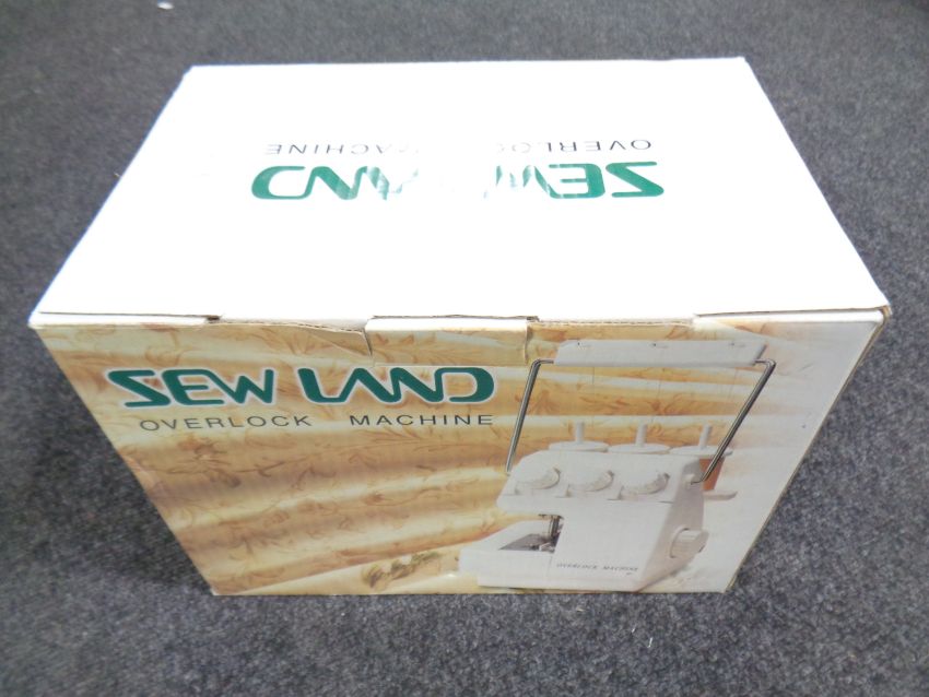 A boxed Sew Land over locking sewing machine