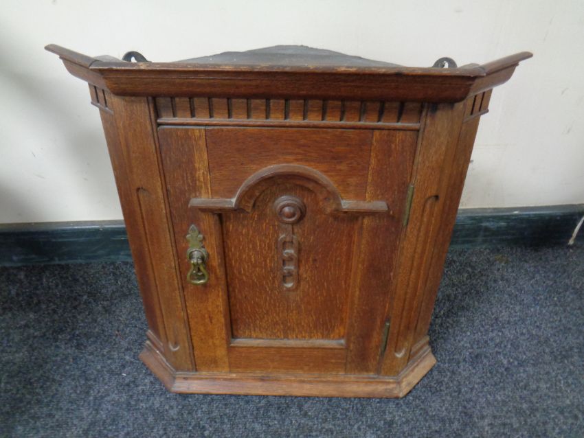 A 19th century hanging oak corner cupboard