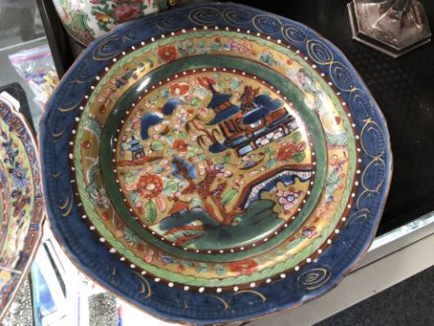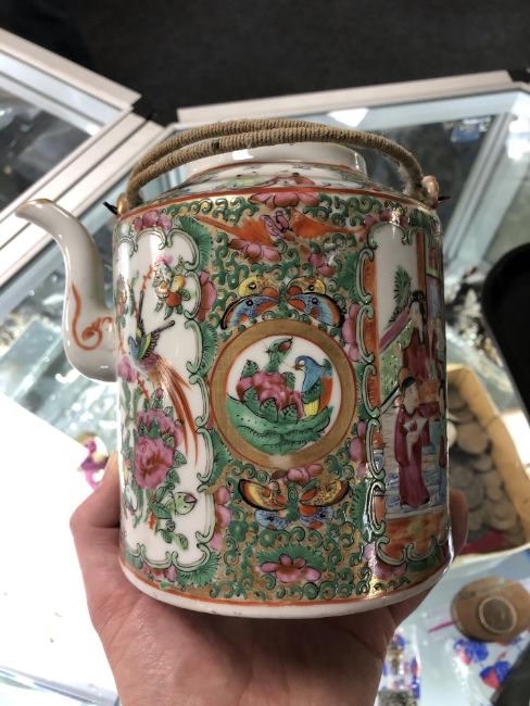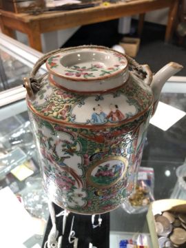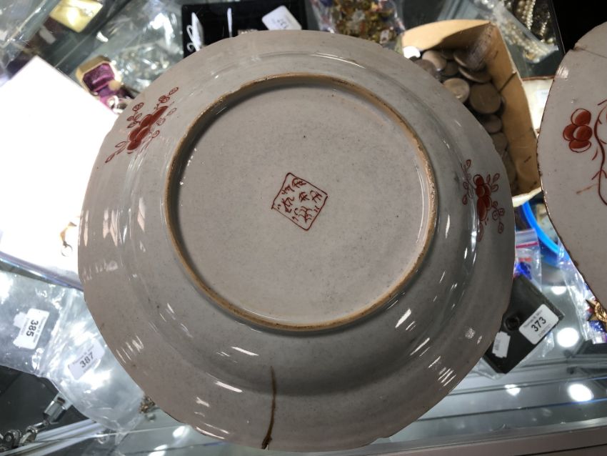 Teapot with chip to spout. Plates with hairline cracks. Otherwise good condition, See images.