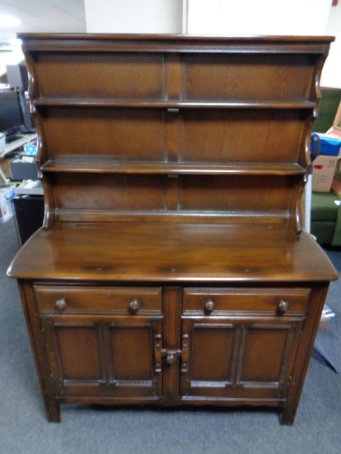 An Ercol solid elm and beech Welsh dresser in an antique finish