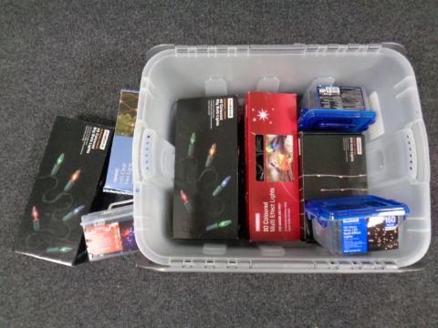 A box containing a large quantity of boxed Christmas lights