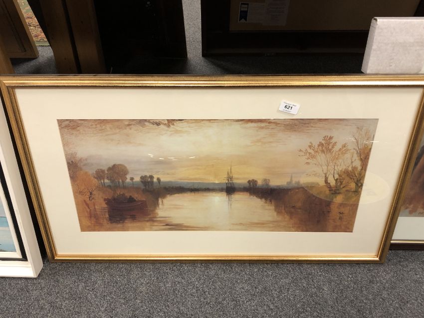 After J M W Turner : Chichester Canal, colour print, 65 x 30 cm, framed