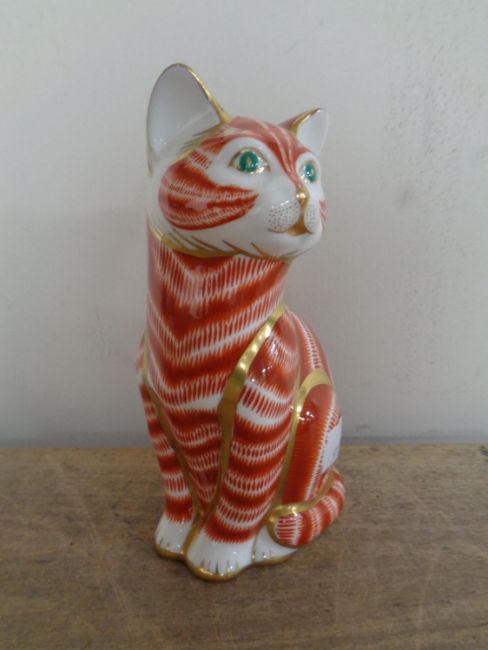 A Royal Crown Derby seated cat paperweight with gold stopper