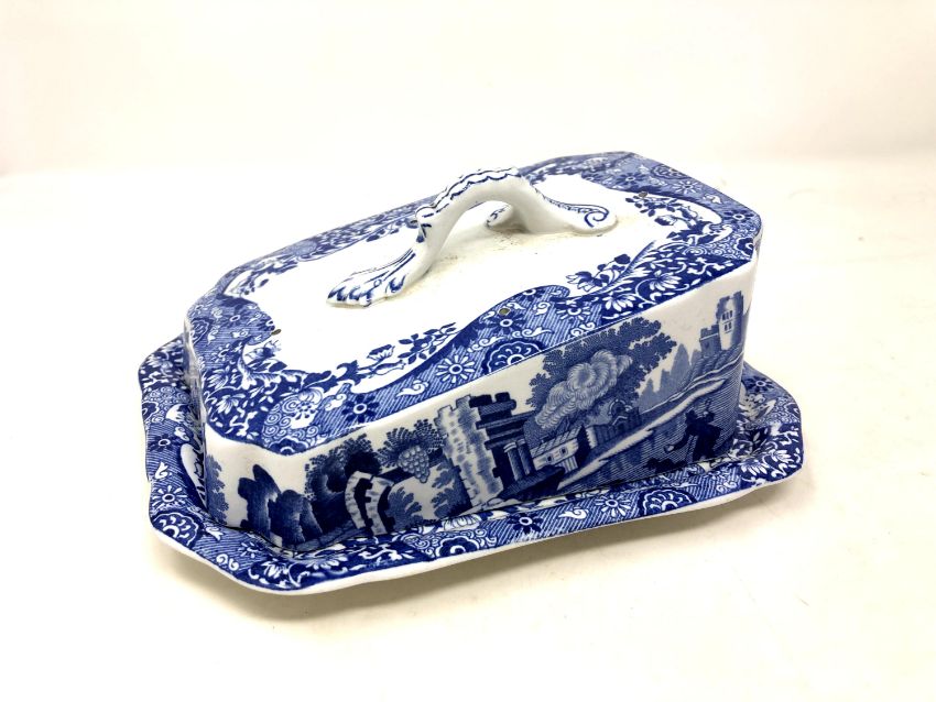 A Copeland Spode's Italian blue and white cheese dish and cover